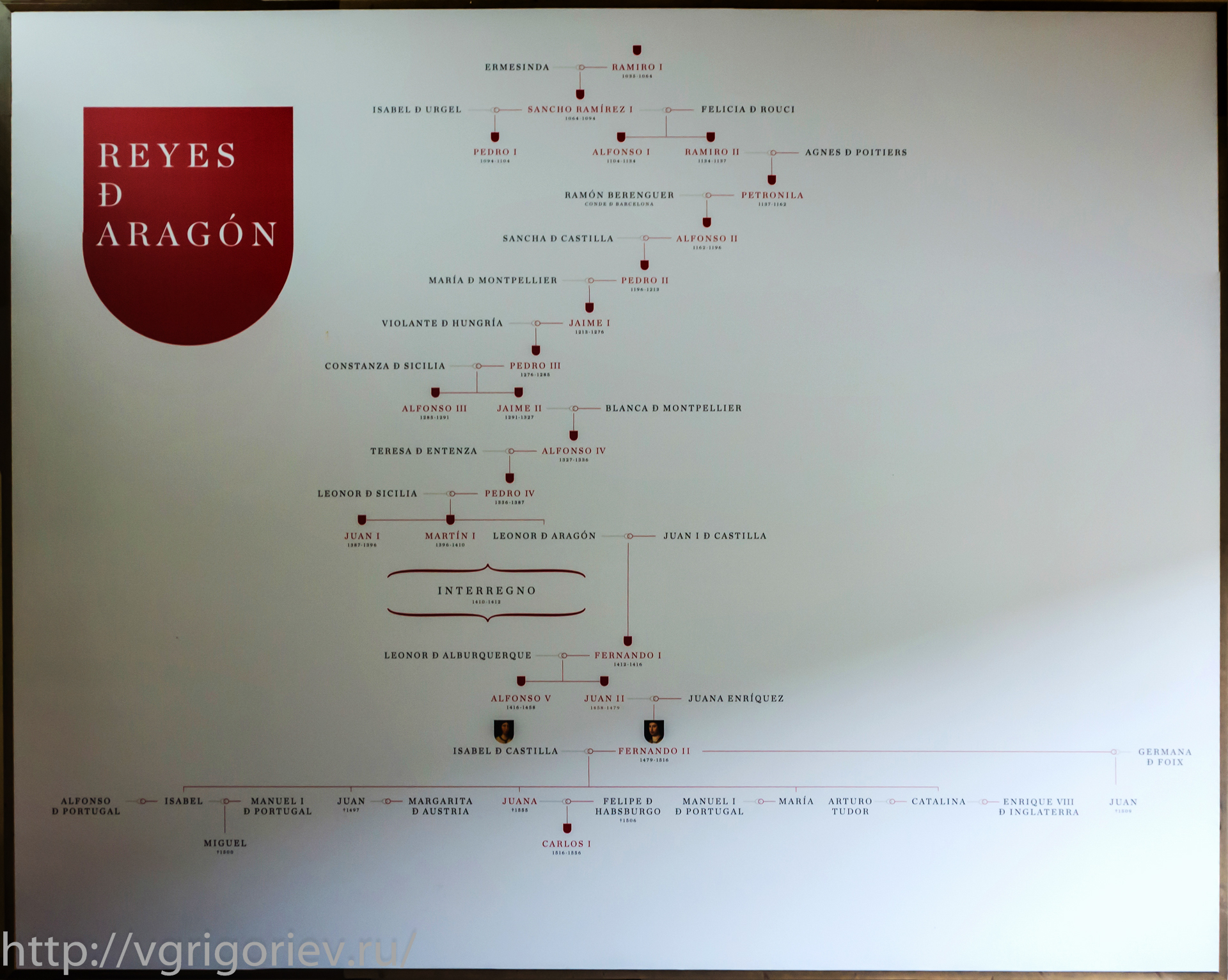 После того, как в 1384 году Сарагосу захватил Педро IV, Альхаферия стала официальной резиденцией Католических королей. Здесь жили Изабелла I Кастильская и Фердинанд II Арагонский, при которых началось объединение Испании.